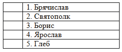 1. Отметьте имена князей, которые были причислены к лику святых.