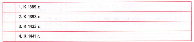 8. Пользуясь своими знаниями по всеобщей истории, расставьте в хронологической последовательности события, предшествовавшие заключению Флорентийской унии и последовавшие после её заключения.