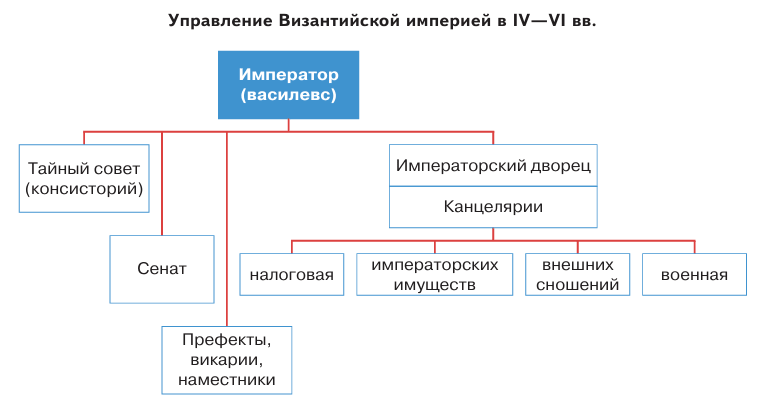 1. Изучите схему и назовите органы управления, которые сохранились в Византии со времён античного Рима.