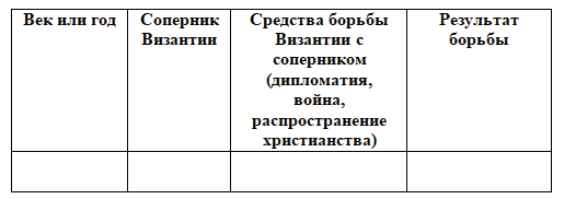 4. Прочитайте п. 3 параграфа и заполните таблицу "Византия и её соседи".