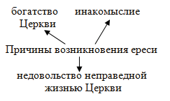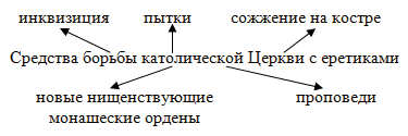 4. Прочитайте п. 4 и составьте схемы "Причины возникновения ересей" и "Средства борьбы католической Церкви с еретиками".