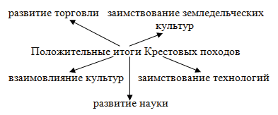 Перечислите положительные и отрицательные итоги Крестовых походов. Ответ оформите в виде схемы.