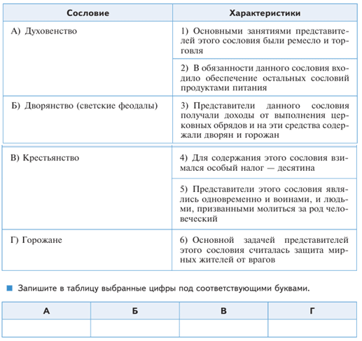 3. Установите соответствие между сословиями средневекового европейского общества и признаками, его характеризующими. К каждой позиции первого столбца подберите одну соответствующую позицию из второго столбца.