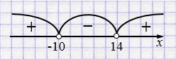 \(x - 14 = 0\) или \(x + 10 = 0\)