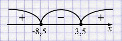 в) \((x - 3{,}5)(x + 8{,}5) \ge 0\);