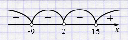 Ответ: \(x \in (-\infty; -9) \cup (2; 15)\).