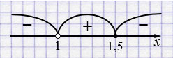 Ответ: \(x\in(-\infty;1)\cup\left[1,5;+\infty\right).\)