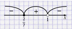 Ответ: \(x\in\left[\dfrac{2}{7};1\right).\)
