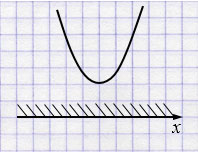 2) если трехчлен имеет корни, то отмечаем их на оси \(x\) и через отмеченные точки проводим схематически параболу, ветви которой направлены вверх при \(a > 0\) или вниз при \(a < 0\); если трехчлен не имеет корней, то схематически изображают параболу, расположенную в верхней полуплоскости при \(a > 0\) или нижней при \(a < 0\);
