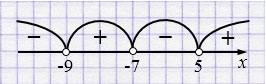 2. На примере неравенства \((x-5)(x+7)(x+9)<0\) расскажите, как решают неравенства методом интервалов.