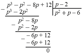 \( p^{3} - p^{2} - 8p + 12 = (p - 2)(p^{2} + p - 6)\)