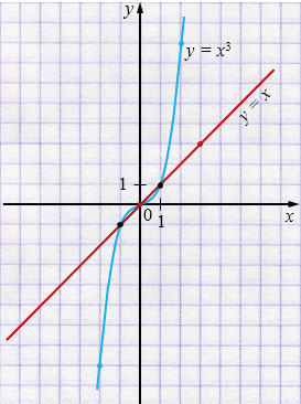 \(y = x^3\) и \(y=x\), где