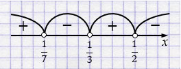 б) \(\left(\dfrac{1}{3} - x\right)\left(\dfrac{1}{2} - x\right)\left(\dfrac{1}{7} - x\right) < 0\);