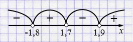 Ответ: \(x \in (-\infty; -1,8) \cup (1,7; 1,9)\).