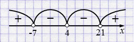 Ответ: \(x \in (-\infty; -7) \cup (21; +\infty)\).