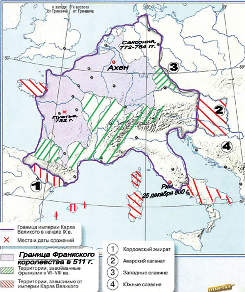 Рассмотрите контурную карту "Рождение средневекового мира. Империя Карла Великого" и выполните задания.