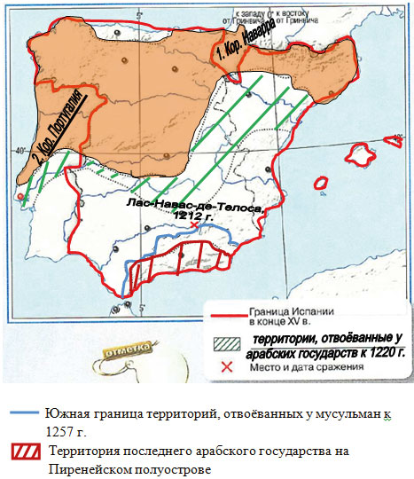 Рассмотрите контурную карту "Подъём средневековой Европы. Реконкиста" и выполните задания.