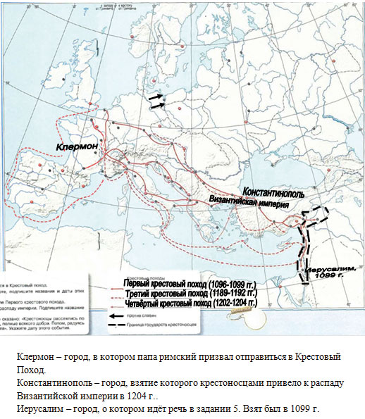 Рассмотрите контурную карту "Подъём средневековой Европы. Крестовые походы в XI - XIII вв." и выполните задания.