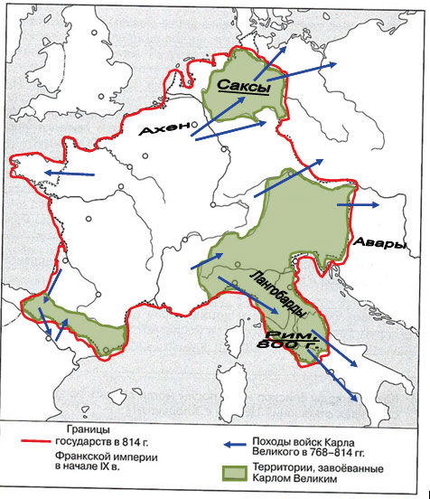 1) Обозначьте стрелками направления походов войск Карла Великого.