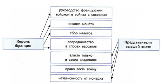 5. Установите соответствие между представителями власти во Франции и полномочиями, которыми они обладали. Обозначьте связь на схеме стрелками.