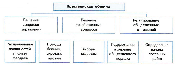 6. Завершите заполнение схемы, соединив линиями группы функций и относящиеся к ним функции крестьянской общины.