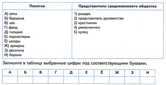 3. Установите соответствие между представителями средневекового общества и понятиями, связанными с каждым из них.