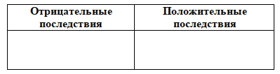 11. Определите положительные и отрицательные последствия монгольских завоеваний. Заполните таблицу, вписав номера соответствующих положений в соответствующие столбцы.