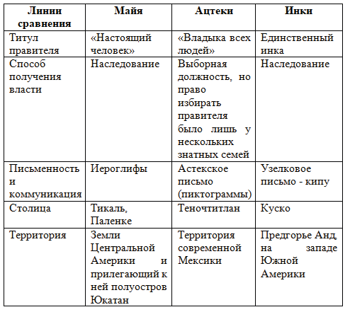 9. Заполните сравнительную таблицу "Государства доколумбовой Америки".