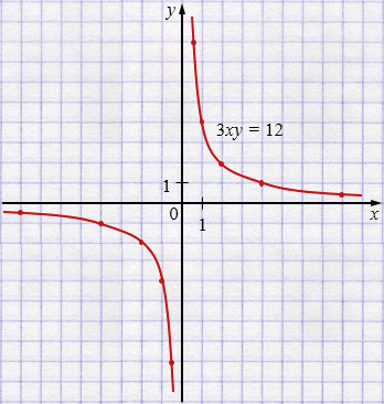 \(y = \frac{12}{x}\) - гипербола в I и III четвертях.