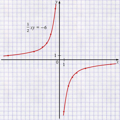 г) \(\frac12 xy = -6\) \(/\times2\)