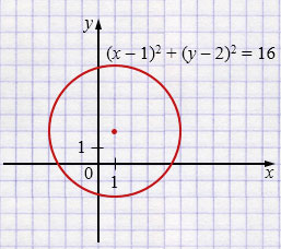 Центр окружности \((1;\,2)\), \(r = 4\)