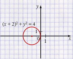 Центр окружности \((-2;\,0)\), \(r = 2\)