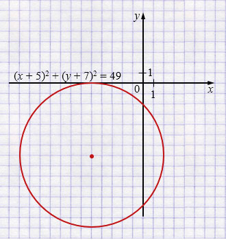 Центр окружности \((-5;\,-7)\), \(r = 7\)