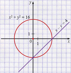 \(\begin{cases} x^2 + y^2 = 16,\\ y = x - 4 \end{cases}\)