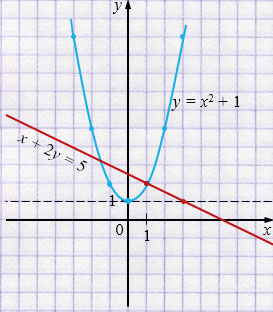 \(\begin{cases} y = x^2 + 1,\\ 2y = -x + 5 / : 2 \end{cases}\)