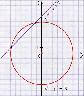\(\begin{cases} y = x + 7, \\ x^2 + (x + 7)^2 = 36 \end{cases}\)