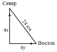 Из некоторого пункта вышли одновременно два отряда. Один направился на север, а другой — на восток. Спустя 4 ч расстояние между отрядами было равно 24 км, причём первый отряд прошёл на 4,8 км больше, чем второй. С какой скоростью шёл каждый отряд?