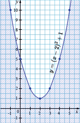 Графиком данной функции является парабола, ветви которой направлены вверх, с вершиной в точке \((2; 1).\)