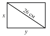 Одна из сторон прямоугольника на 14 см больше другой. Найдите стороны прямоугольника, если его диагональ равна 26 см.