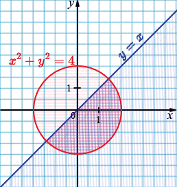 \( \begin{cases} x^2 + y^2 \le 4,\\ y \le x \end{cases}\)