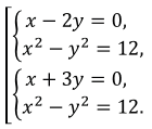 \(\begin{cases}x=2y,\\ (2y)^2-y^2=12\end{cases}\)