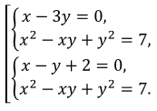 \(\begin{cases}(x-3y) (x - y+2)=0,\\ x^2-xy+y^2=7.\end{cases}\)
