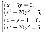 \(\begin{cases}(x-5y)(x-y-1)=0,\\ x^2-20y^2=5.\end{cases}\)