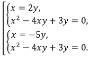 \(\begin{cases} x = 2y, \\ (2y)^2-4\cdot2y\cdot y+3y=0\end{cases}\)