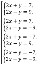 \[ \begin{cases} 2x + y=\pm7,\\ 2x -y=\pm9 \end{cases} \]
