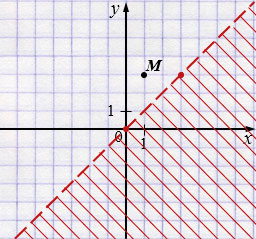 Определение нужной полуплоскости: выбирают точку и проверяют, удовлетворяет ли она неравенству. Если да — закрашивают полуплоскость, где лежит эта точка, если нет — противоположную.