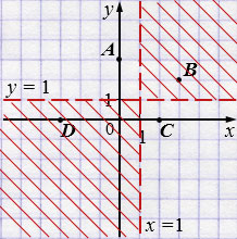 а) \((x-1)(y-1)>0\);