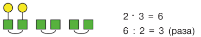 2) 6 : 2 = 3 (р.) - треугольников меньше, чем кружков.