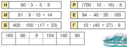 9. Вычисли. Расшифруй фамилию известного российского мореплавателя, который пересёк Тихий океан и достиг Аляски.