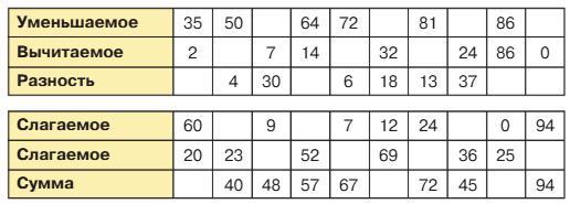 | Вычитаемое | 2 | 46 | 7 | 14 | 66 | 32 | 68 | 24 | 86 | 0 |